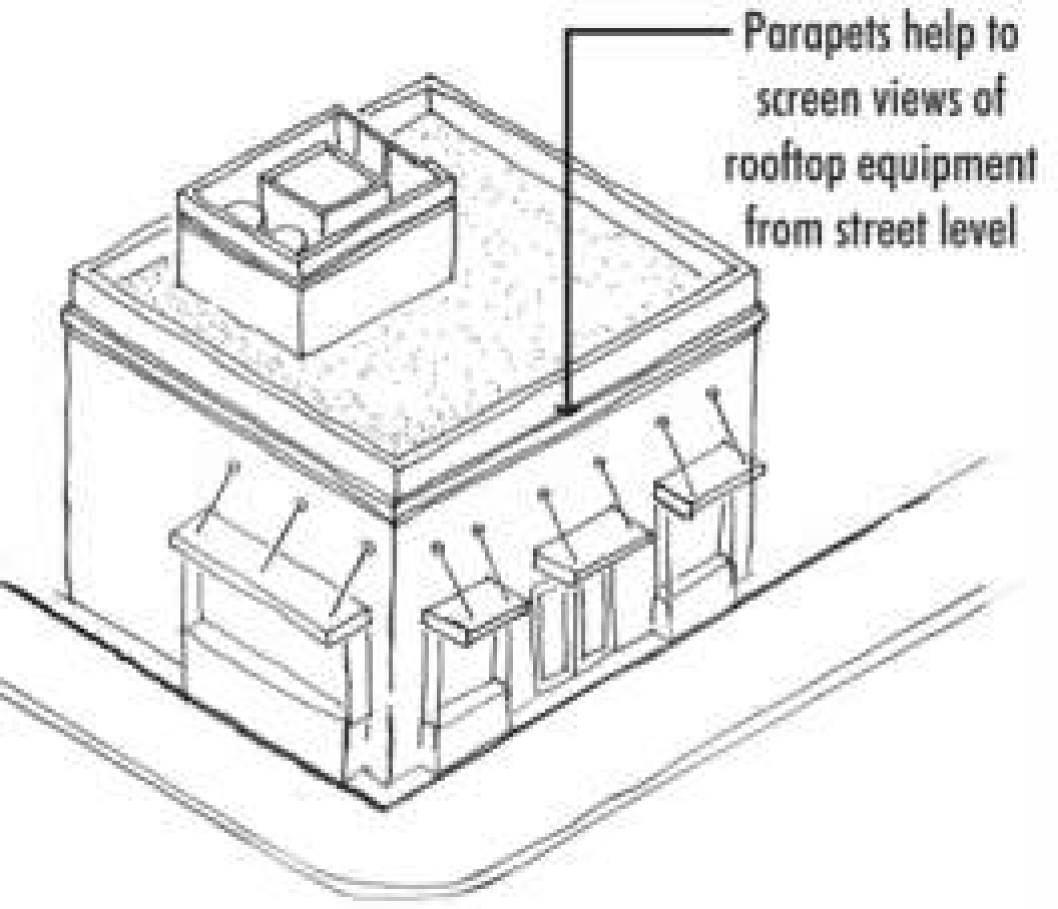 Awning, Canopy, or Marquee Signs - Awning and canopy structures should be of a visually uniform style on a building. For example, it would be inappropriate to have metal canopies, canvas awnings, and bull nose-style awnings on the same facade or along two facades sharing a corner. However, different styles of awning or canopy structures could be located on opposite facades where they cannot be seen at the same time.
