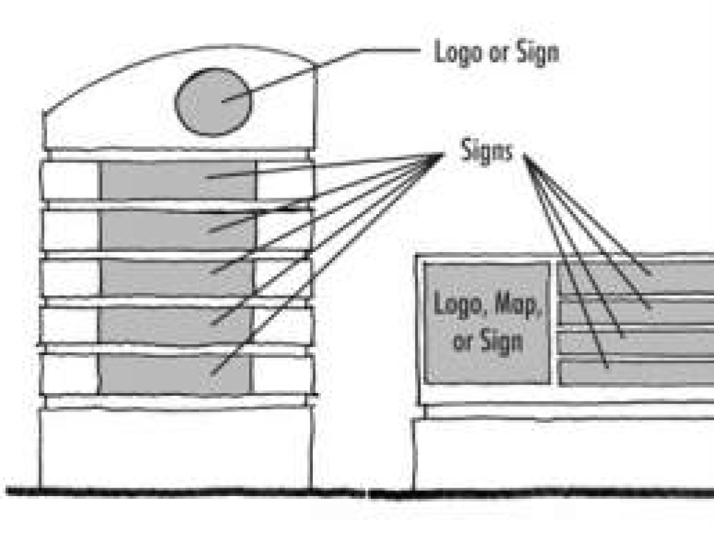 To promote visual clarity, gateway treatments should be a minimum of eight feet (8') tall at any dimension from the ground or base condition.