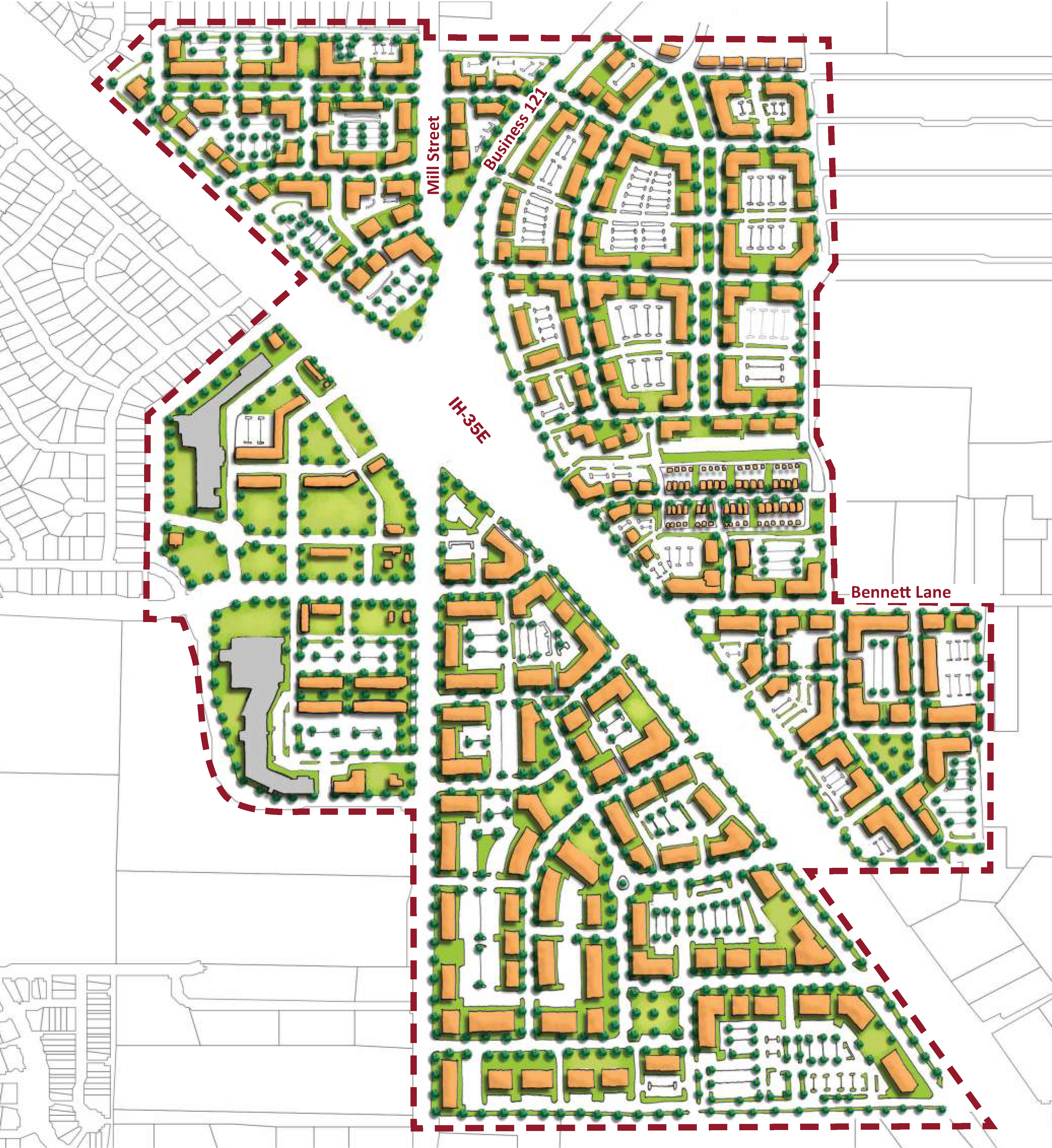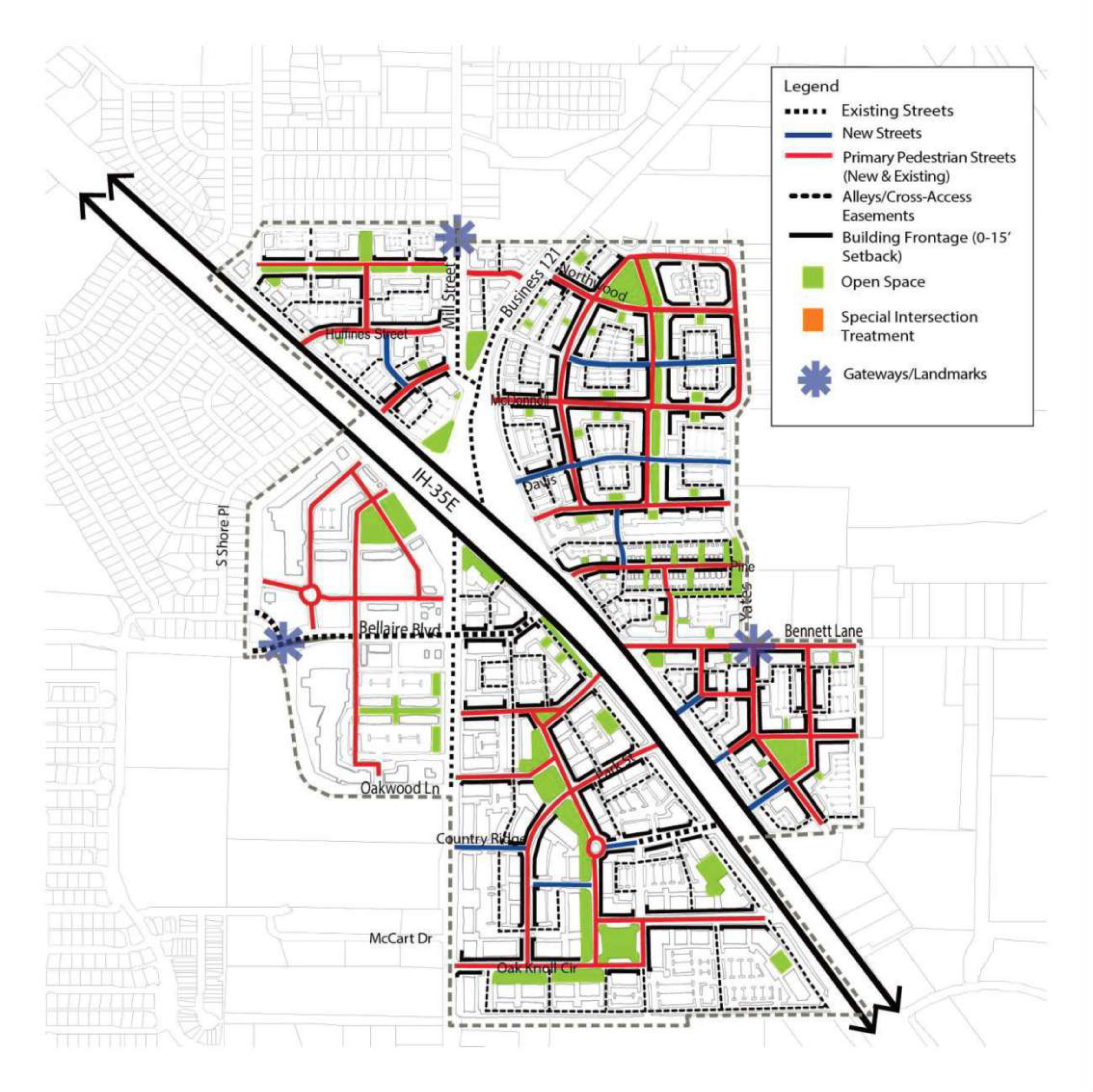 The central section of the corridor is tied to Old Town Lewisville
