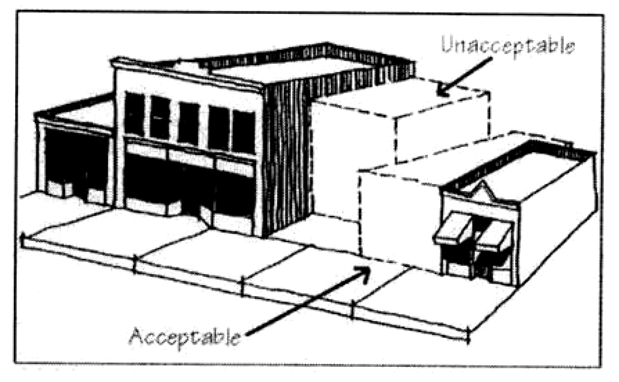 Additionally, a master sign plan for the entire building should be developed to guide design decisions for individual signs. This is especially important where the use of contemporary building forms and styles in conjunction with several colorful, attention-getting signs are the norm. Typical "strip-commercial" development patterns are inappropriate in Old Town.