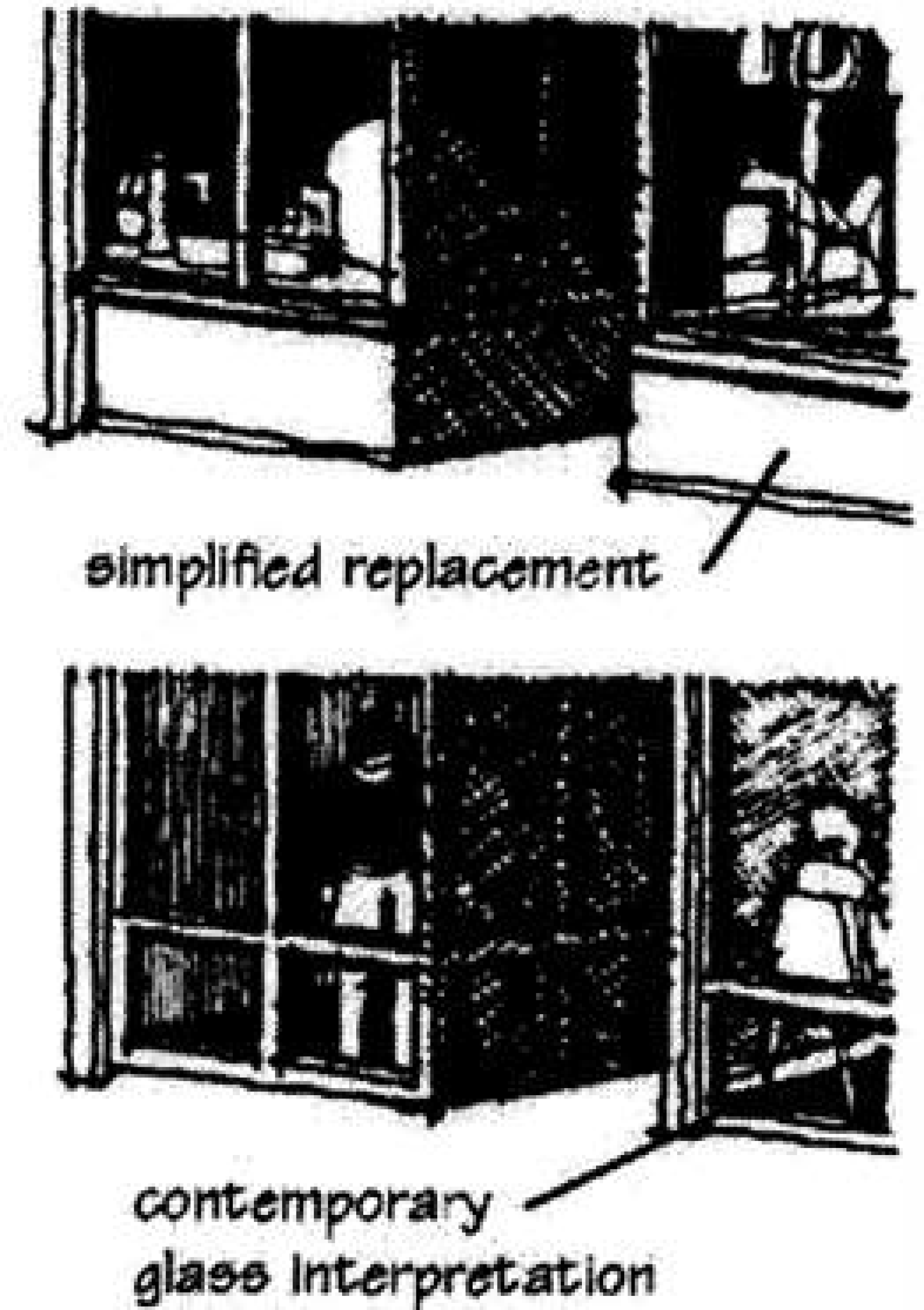 These buildings have stone and brick facades. Ornamental detail exists, but is simple, limited to a shallow molding such as a cornice. Some cornices were made of masonry, while others were made of stamped metal. Many carry simplified Italianate detailing. In essence, these buildings lack distinctive detail, contrasting them with the revival styles that were also popular during this period.