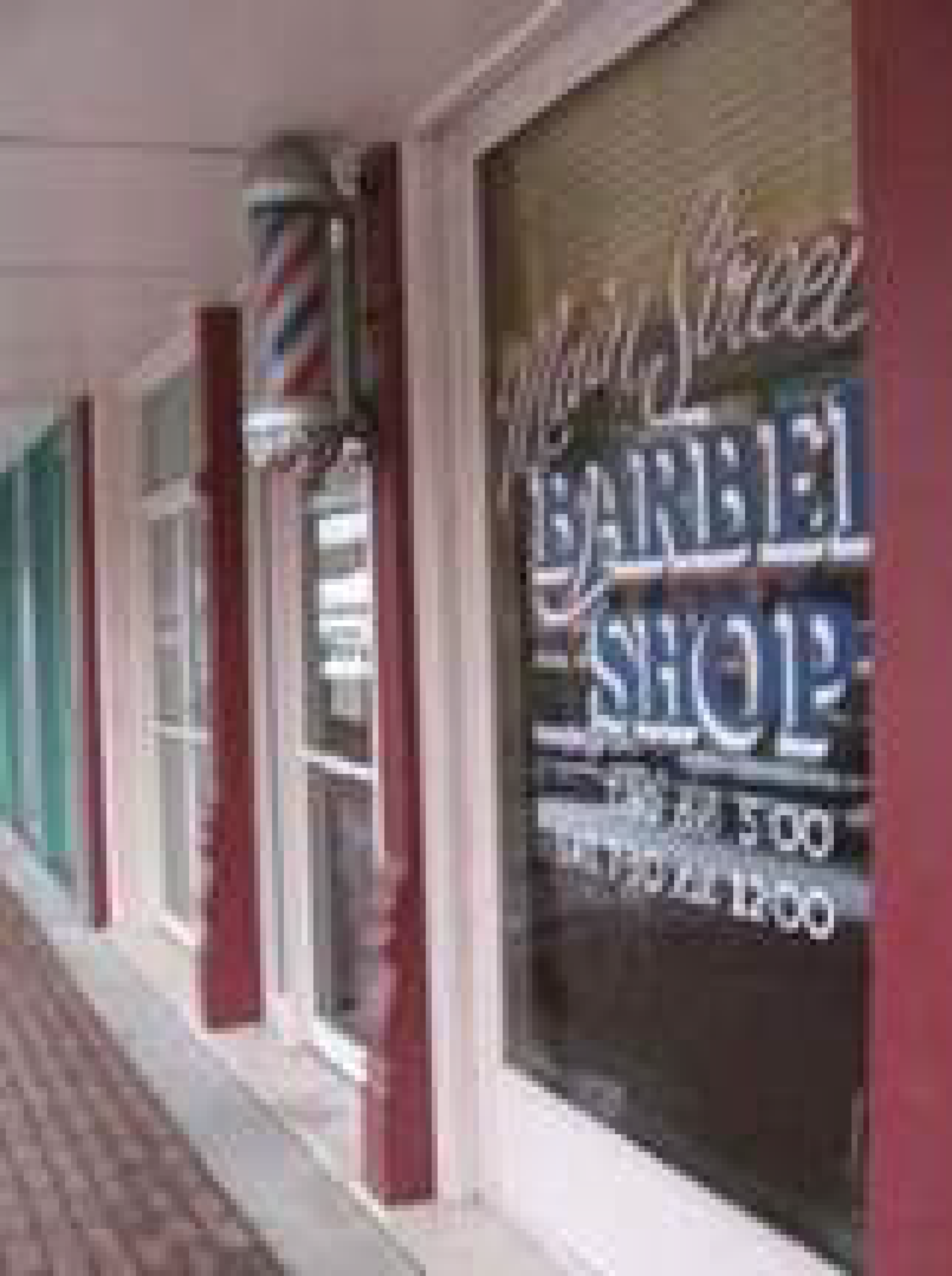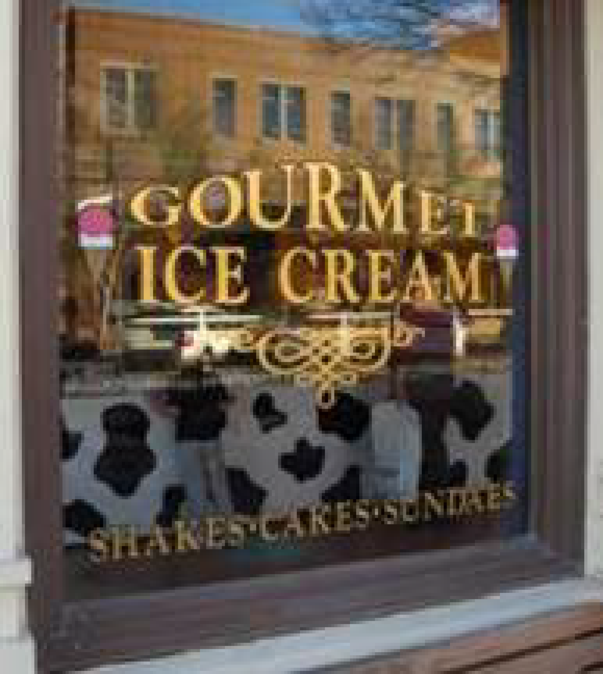 Window signs, painted on glass, used at the street level and on upper floors.