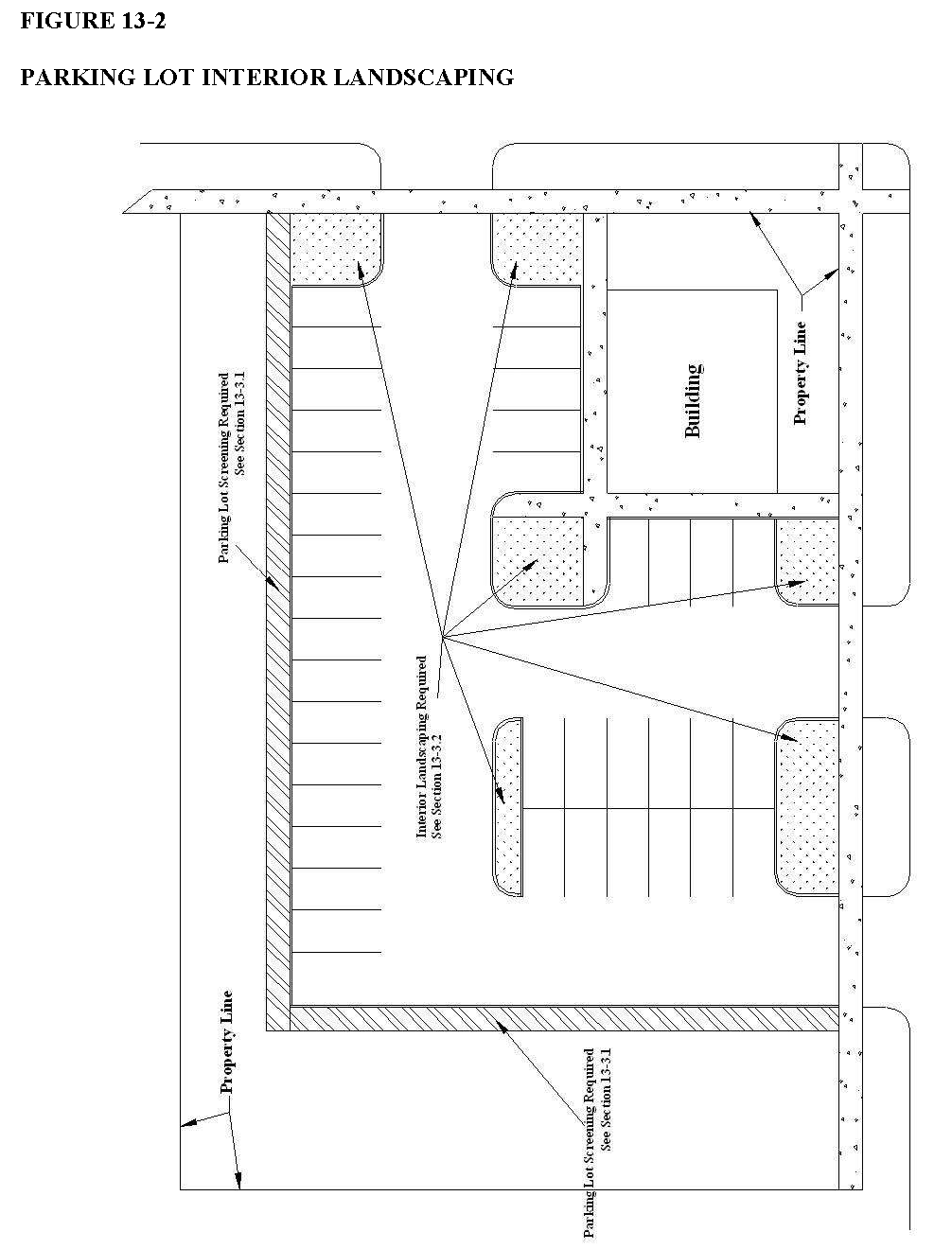Parking lot interior landscaping. Interior landscaping shall be provided for parking lots in accordance with the following provisions (see figure 26-13-2):