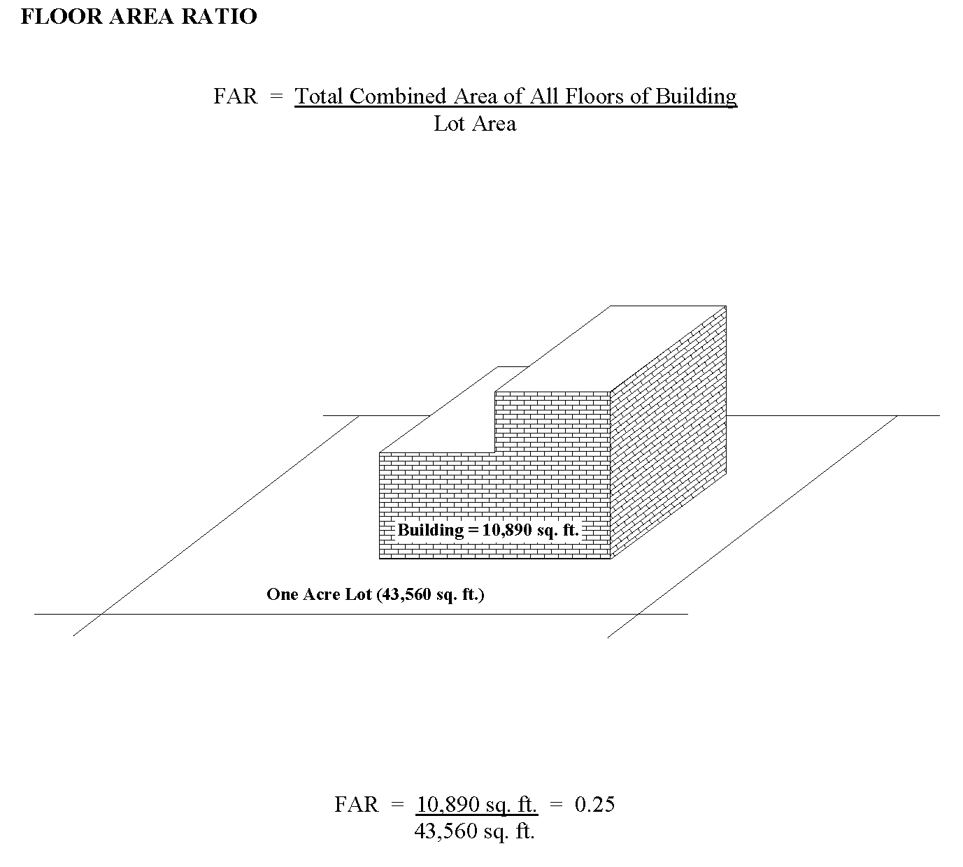 Floor Area Ratio (FAR). The floor area of all buildings on a zoning lot divided by the total lot area of the zoning lot on which they are located. For planned developments, the FAR shall be determined by dividing the gross floor area of all buildings by the net area of the site.
