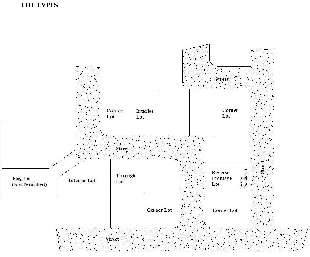 Lot, reverse frontage. A through lot that does not have access from one (1) of the streets fronting such lot.