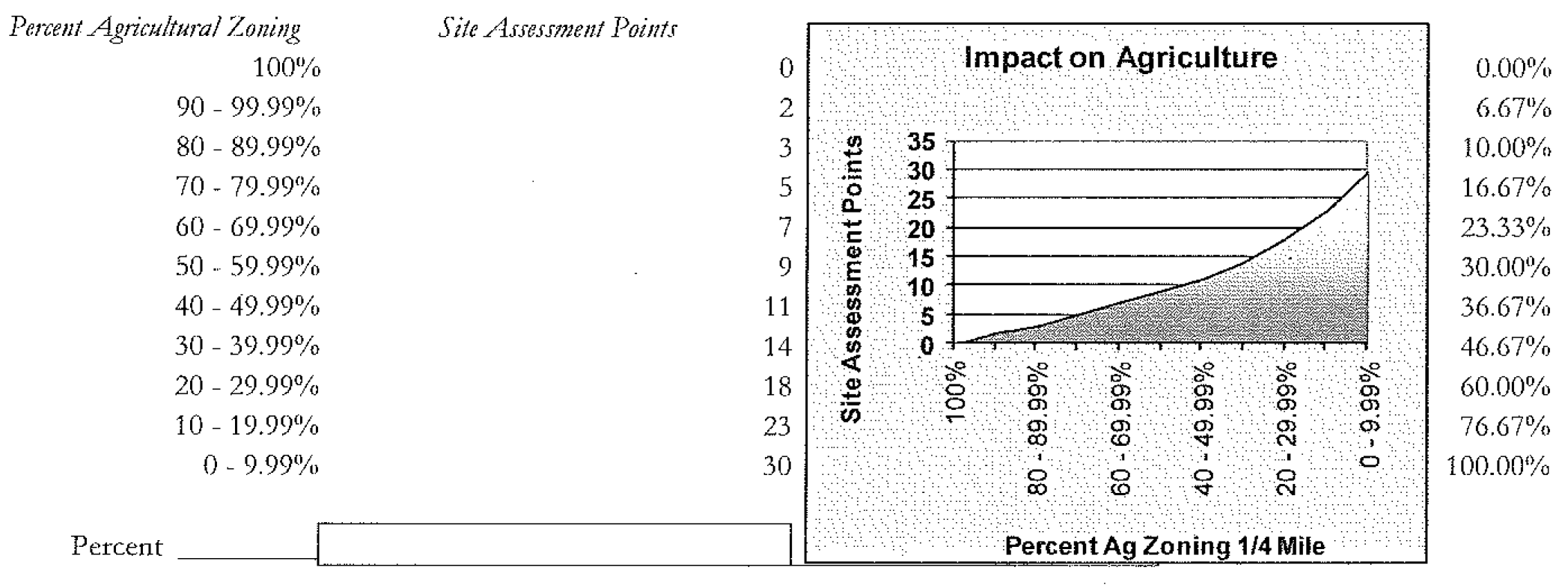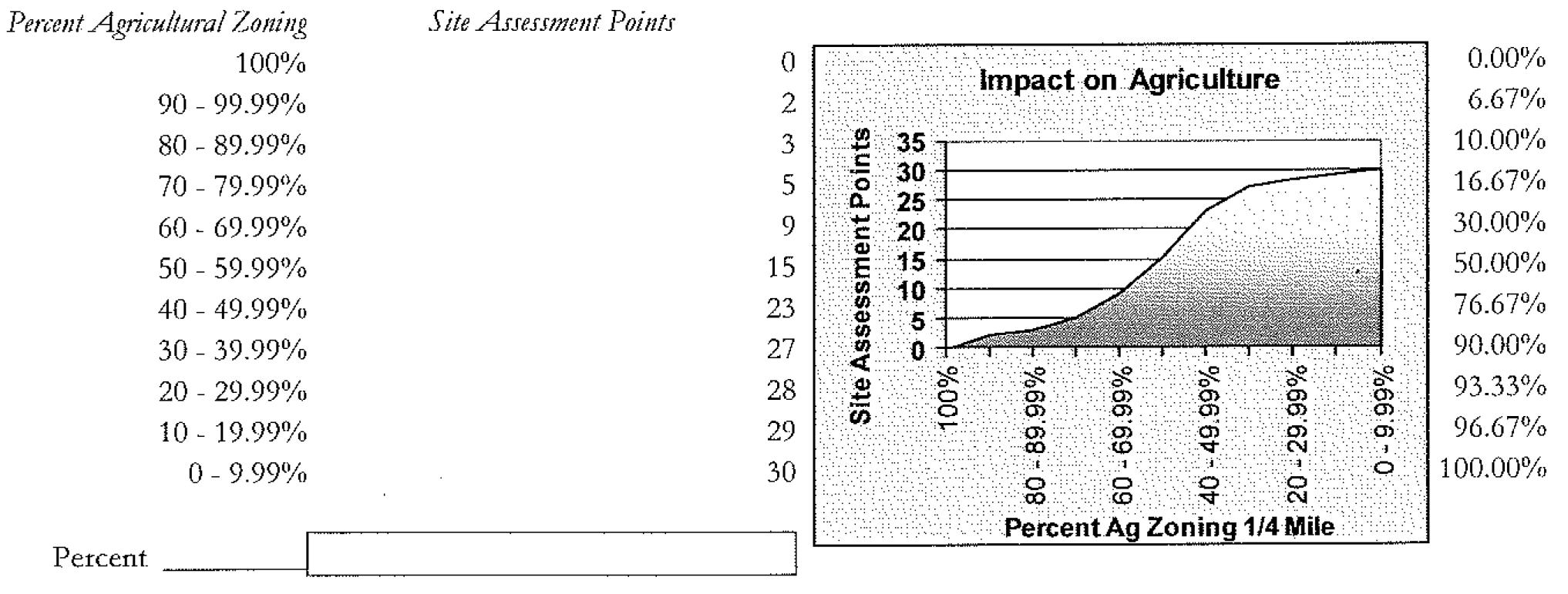 Site Assessment Criterion: Agricultural Zoning within One-Quarter Mile (30 maximum points)