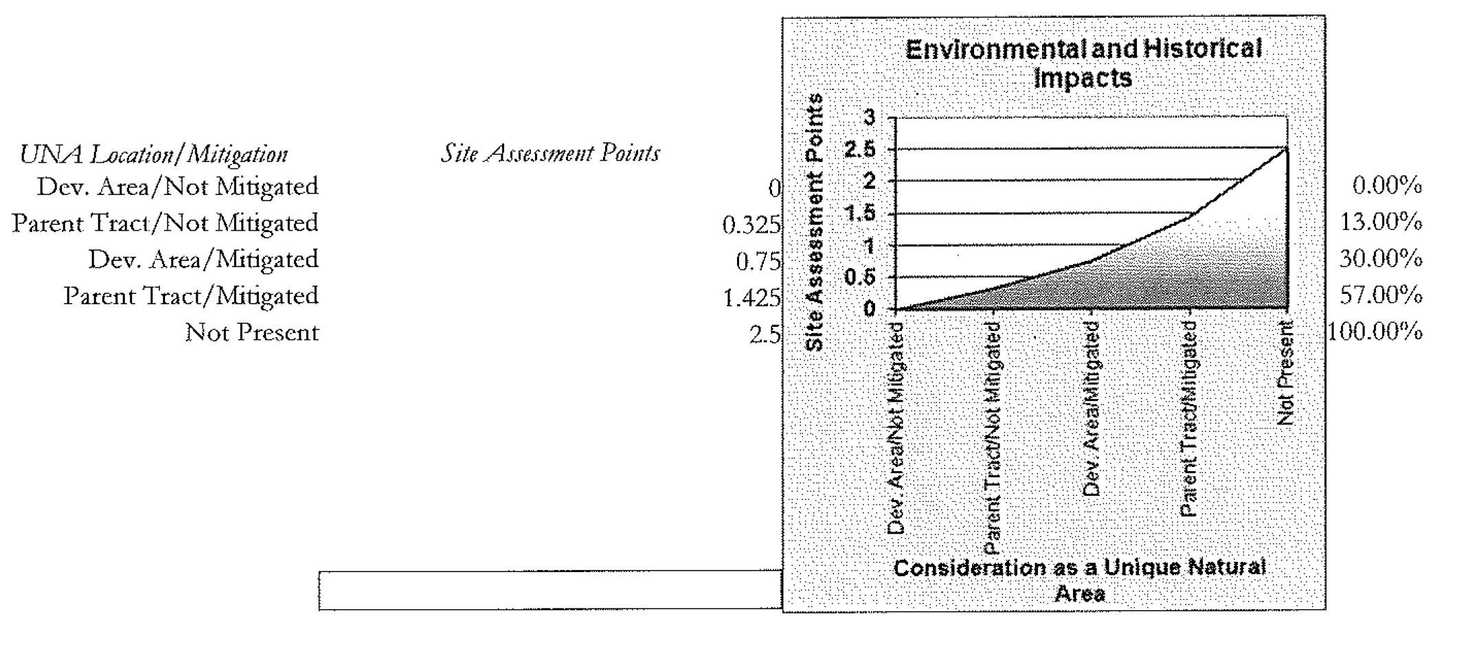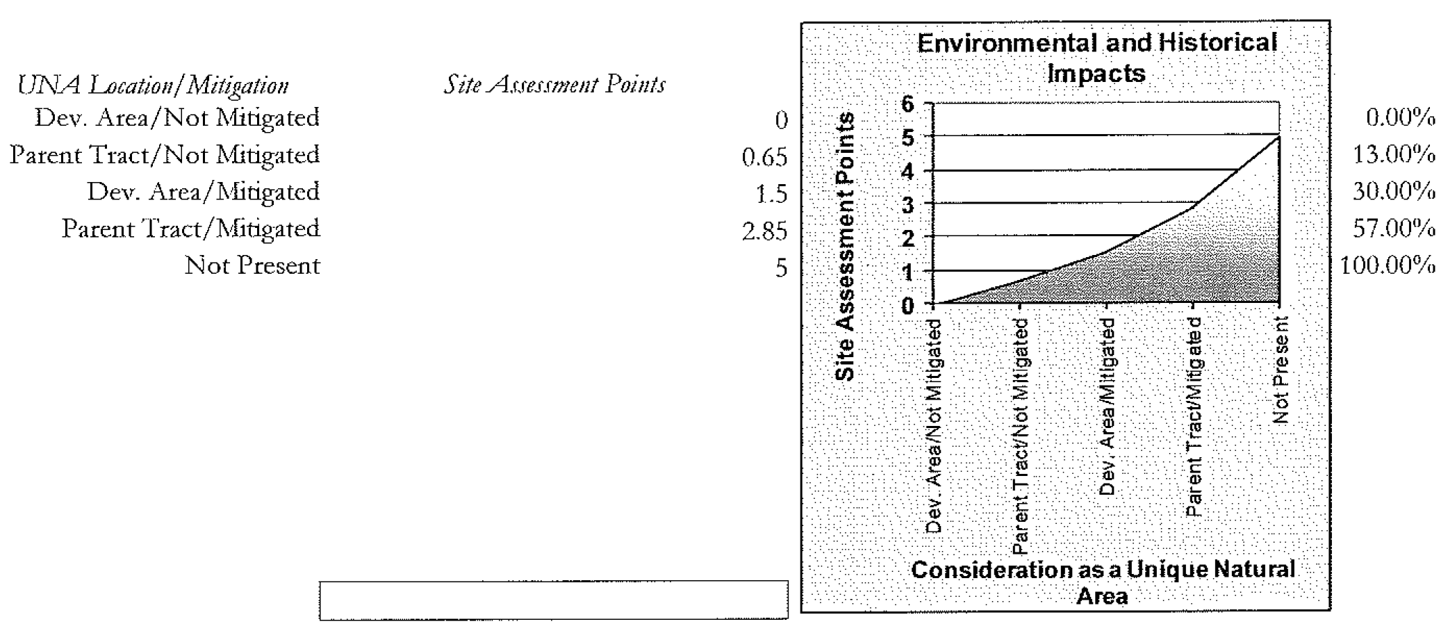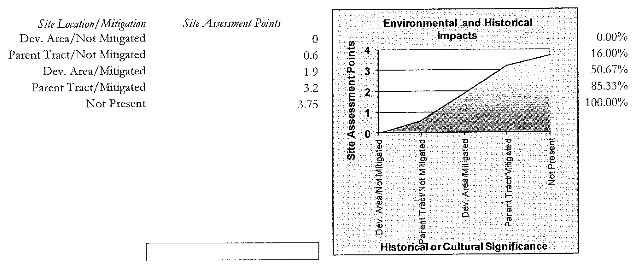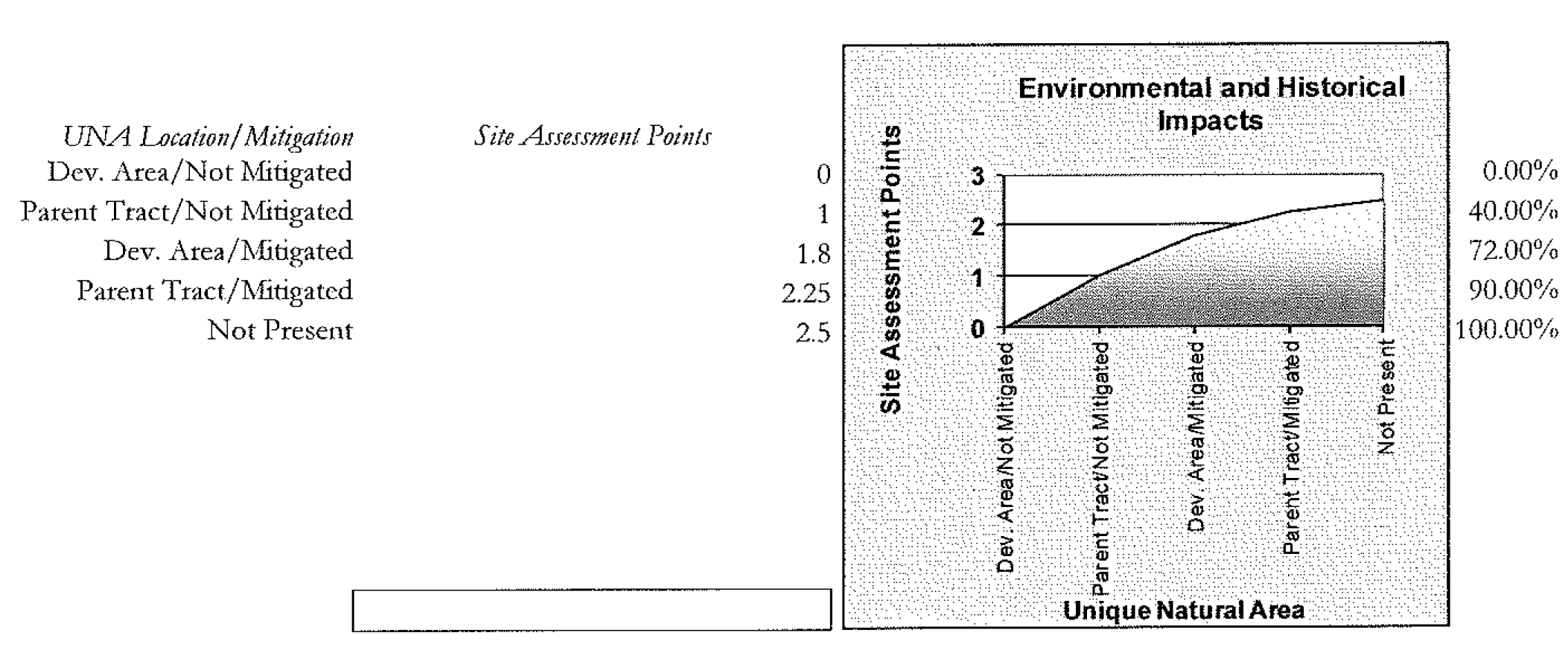 Description: This factor considers the impact of the proposed development on the environmental and historical resources of the parent tract. Inclusion in the report as a significant site shall be verified and proposed mitigation measures considered.