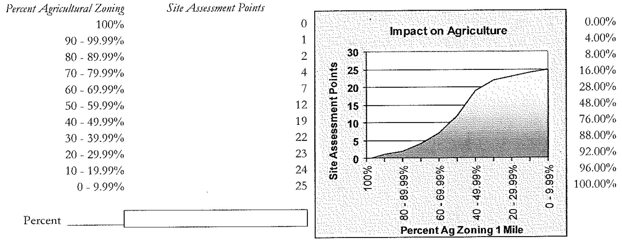 Site Assessment Criterion: Agricultural Zoning within One Mile (25 points maximum)