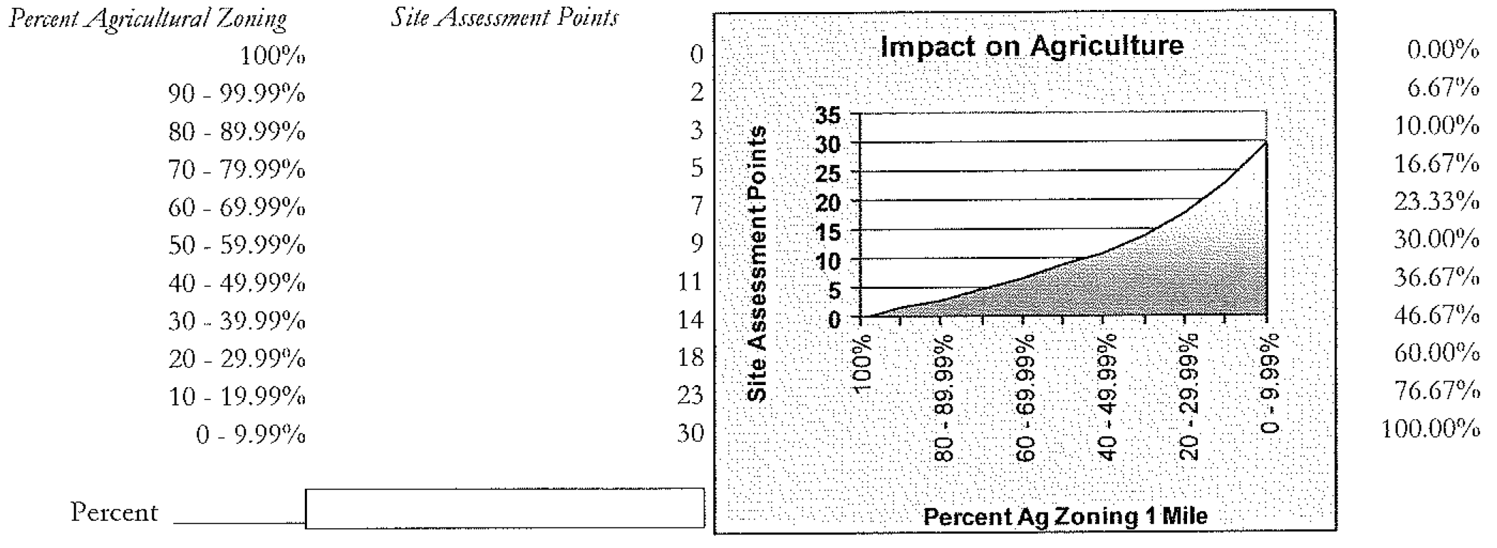 Site Assessment Criterion: Agricultural Zoning within One Mile (30 points maximum)