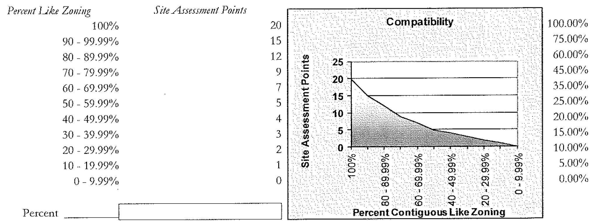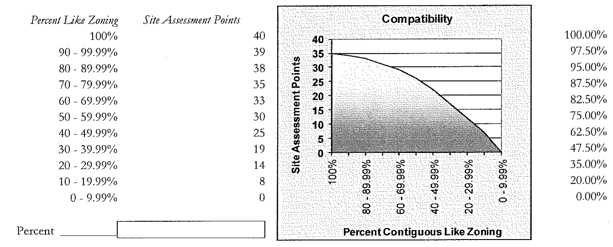 Site Assessment Criterion: Contiguous Like Zoning (40 points maximum)