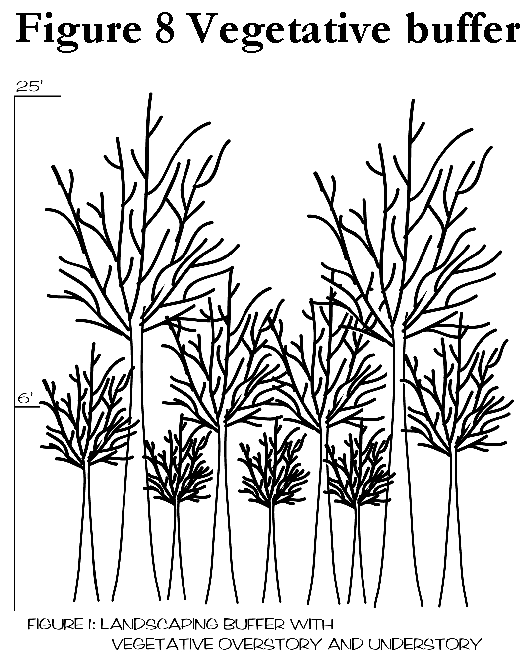 Buffers means physical barriers that separate different land uses or mitigate a risk associated with a land use or structure, including vegetated buffers, topographic buffers, setback or distance buffers.