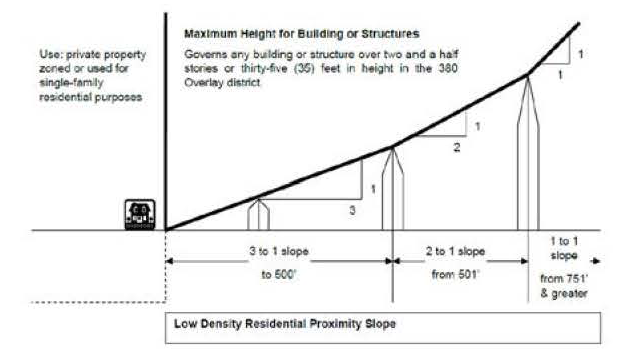 Note 3. A height setback envelope is a plane projected upward and outward from a site of origination, which is defined as any private property that is zoned or used for single-family residential purposes.