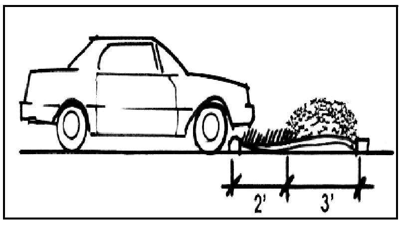 Bumper Overhang Areas. To increase the parking lot landscaped area, a maximum of two feet of the parking stall depth may be landscaped with low-growth, hearty materials in lieu of paving, allowing a two-foot bumper overhang while maintaining the required parking dimensions.