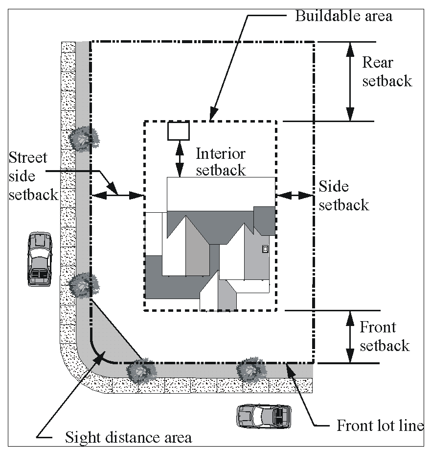 Side Yard. An area extending from the front yard to the rear yard between the nearest side lot line and the required setback.