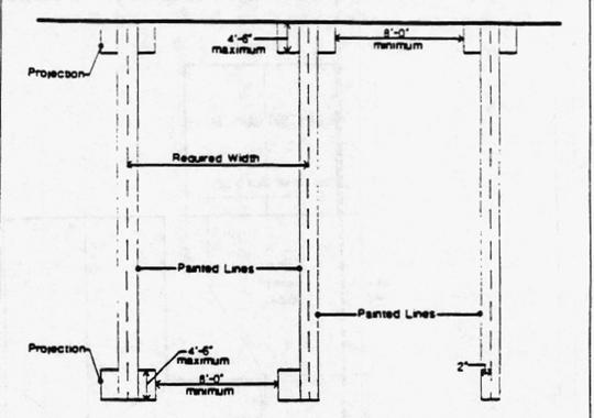Driveway Clearance. All driveways shall have a minimum clearance of seven feet (7′) from the driving surface to any overhead obstruction. No projections in this area shall be allowed. This provision shall not apply to the driving area inside a parking structure where the requirements of the Uniform Building Code shall apply. Where higher clearance is required for handicapped access, the provisions for handicapped access shall apply.
