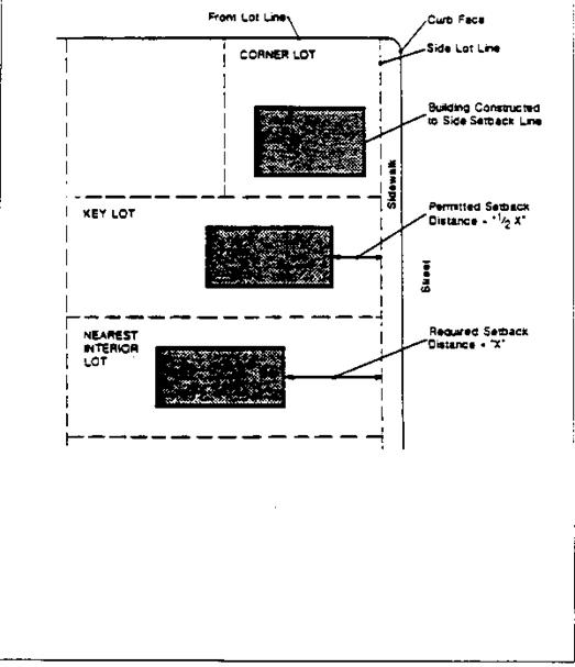 (q) ;hg;The side yard setback is 10 percent of lot width on each side, but in no case shall the interior side yard setback be required to exceed 10 feet (except as specified in footnote(s)). The side street side yard setback shall be 15 percent of lot width, but in no case shall it be required to exceed 15 feet. Neither setback shall ever be less than 3 feet.