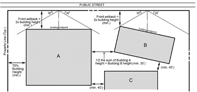 Ingress and egress to property and proposed structures thereon, with particular reference to automotive and pedestrian safety and convenience, traffic flow and control, and access in case of fire or catastrophe.