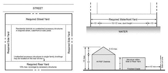 b Refer to Section 158.094(C)(4)(b) for "special canal waterfront yard area" illustrated in the appendix: "land use charts and illustrations". In the event of a conflict between Section 158.095(B) and Section 158.094(C) the provisions of the later shall prevail.