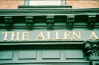 Marquee: a sign with changeable messages attached to and supported by a building above an entrance.