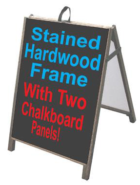 A-frame/sandwich board signs are designed to stand by themselves either on public or private property. Such signs are portable and are usually placed along public sidewalks to attract pedestrians to adjacent businesses.