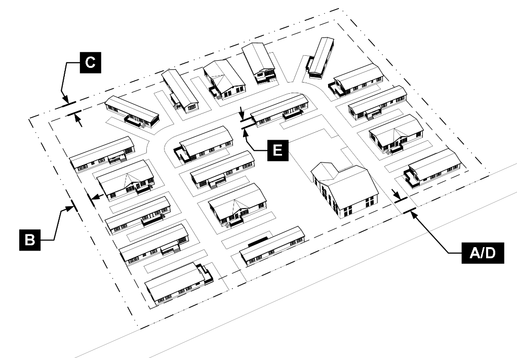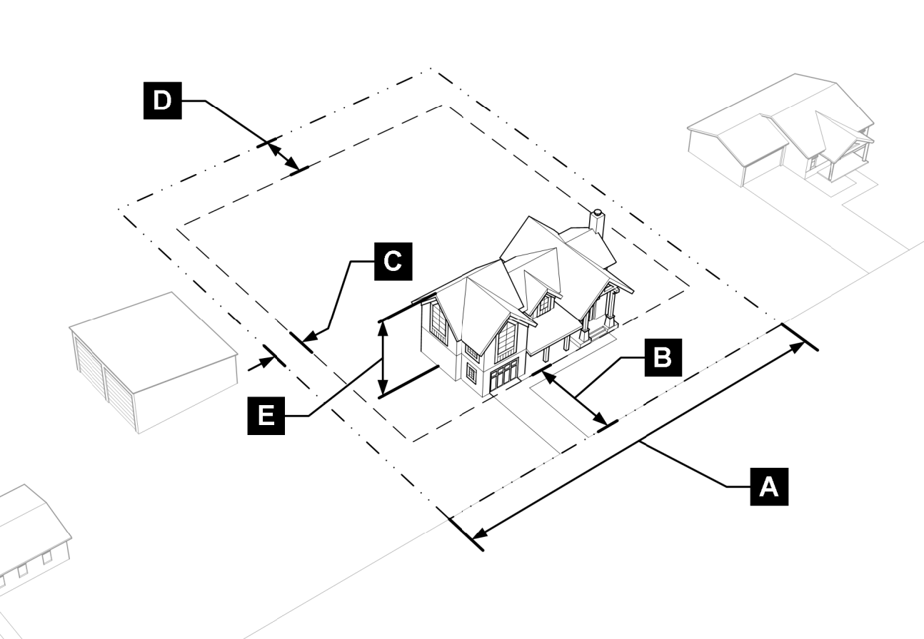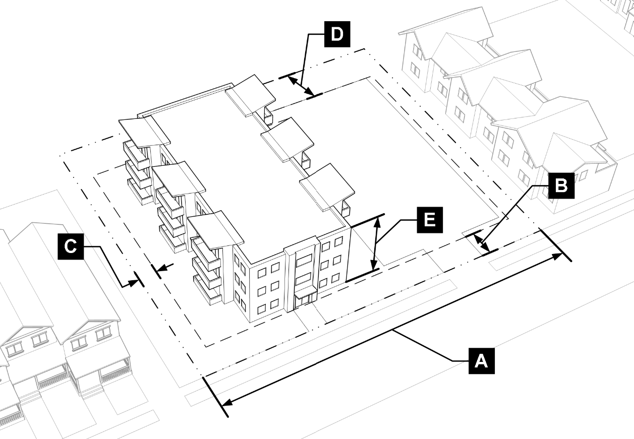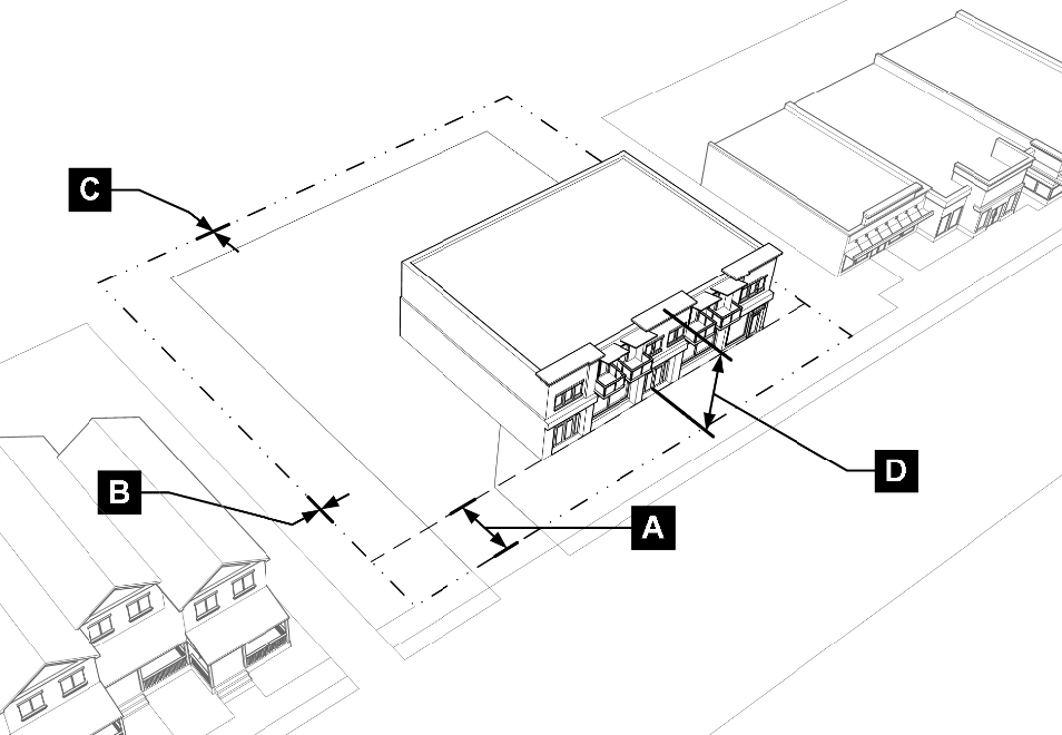 Each base zoning district includes a summary table of dimensional standards. The labels in the table correspond to the applicable illustration. The tables may not identify all standards that may apply to a development. Where two standards are listed for a particular dimension, both shall apply.