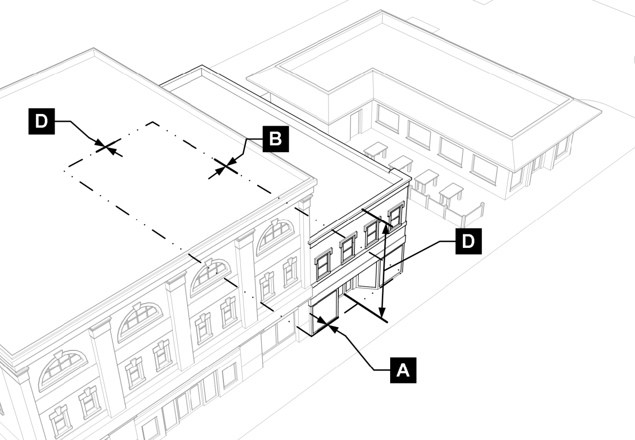 The contextual building height may fall at any point between the maximum building height limit and the height of existing buildings on any lot adjacent to the subject lot.