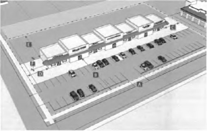 Open spaces such as patios or plazas shall be distinguishable to allow for safe and well-defined areas of seating or gathering outside of designated vehicular traffic flow. These areas shall be defined with landscape elements, low seat walls, benches, planters, paving patterns, or materials distinguishable from the pedestrian sidewalk, on-site pedestrian walkways, and parking areas.