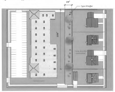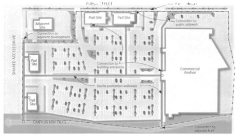 Mixed-use and non-residential development shall be designed to allow for cross-access to adjacent properties to encourage shared parking, shared access points, and increased connectivity on private development to the maximum extent feasible, see Figure 26: Cross-access Between Adjacent Uses. This may be established by one or more of the following: