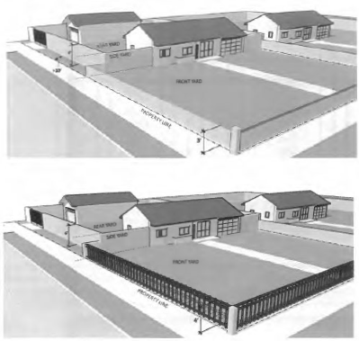 Fences, walls, and hedges in any yard are subject to the height limitations as defined in Table 47: Maximum Height of Walls and Fences.