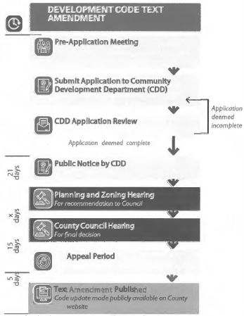 Authority. The county council has authority to make decisions on those types of applications as shown as county council responsibilities in Table 49: Procedures Summary Table.