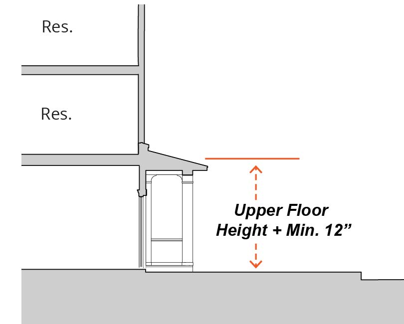 Ground Floor Floor-to-Ceiling Height. Minimum twelve (12) inches taller than typical upper floor floor-to-ceiling height.