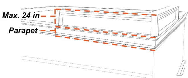 Roofline/parapet at corners shall not exceed roofline/parapet of adjacent wallplanes by more than twenty-four (24) inches.