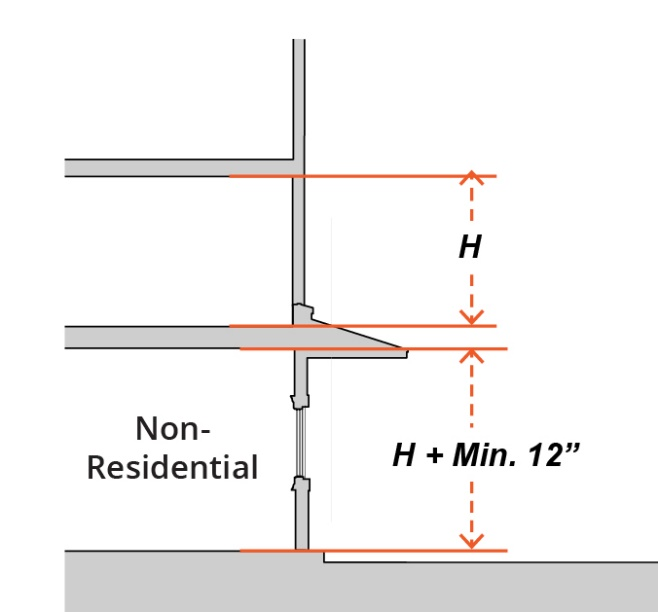 Ground Floor Floor-to-Ceiling Height. Minimum twelve (12) inches taller than typical upper floor floor-to-ceiling.