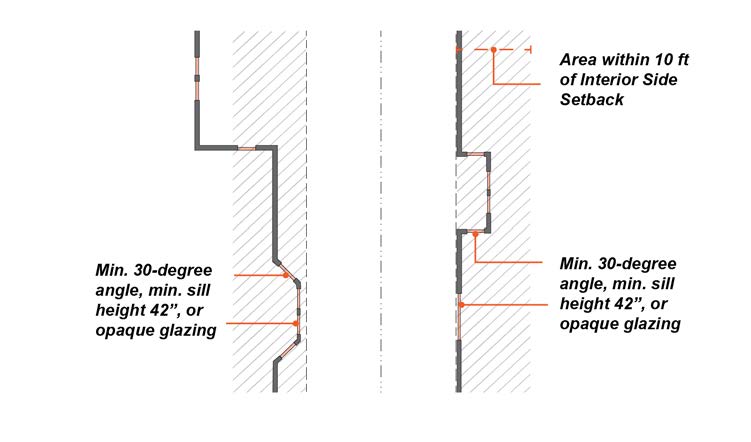Landscaping within and/or on walls adjacent to courtyards, open spaces, and setbacks.
