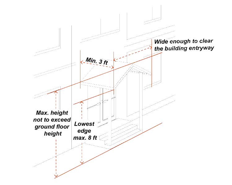 A minimum width of four feet for entries to courtyards or individual single businesses.