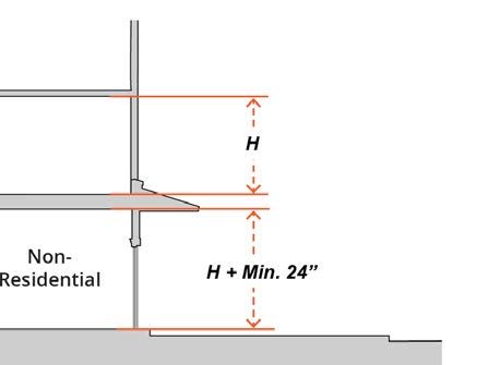 Residential only development(s) building height shall be a maximum of forty (40) feet and four stories.