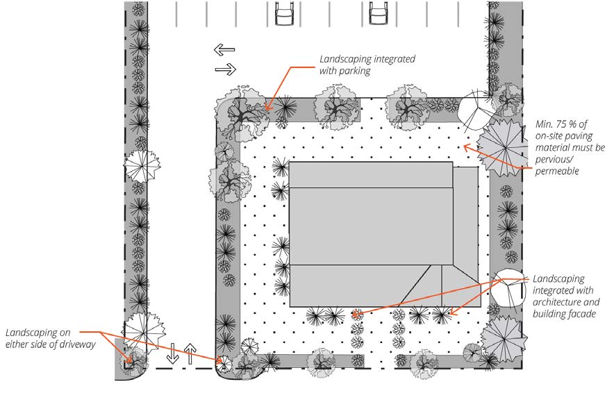 A minimum seventy-five (75) percent of on-site paving material must be pervious/permeable.