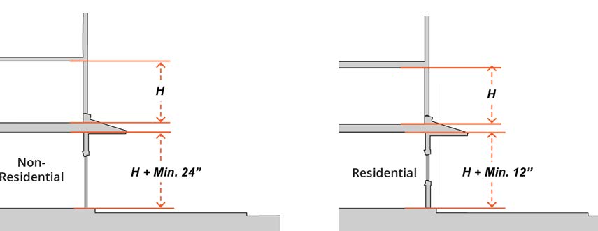 Minimum twenty-four (24) inches taller than typical upper floor floor-to-ceiling height where ground floor is non-residential.