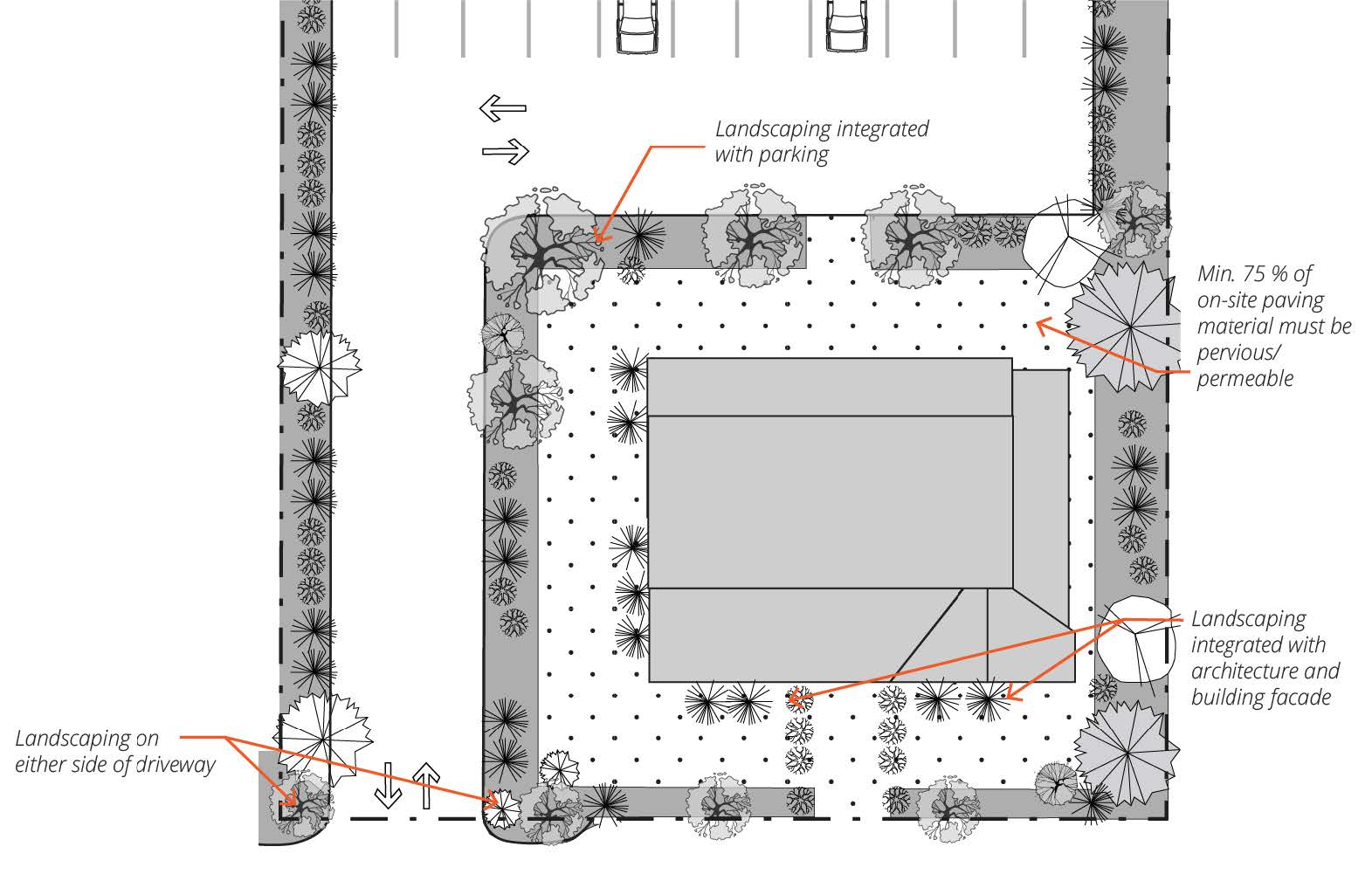 A minimum seventy-five (75) percent of on-site paving material must be pervious or permeable.