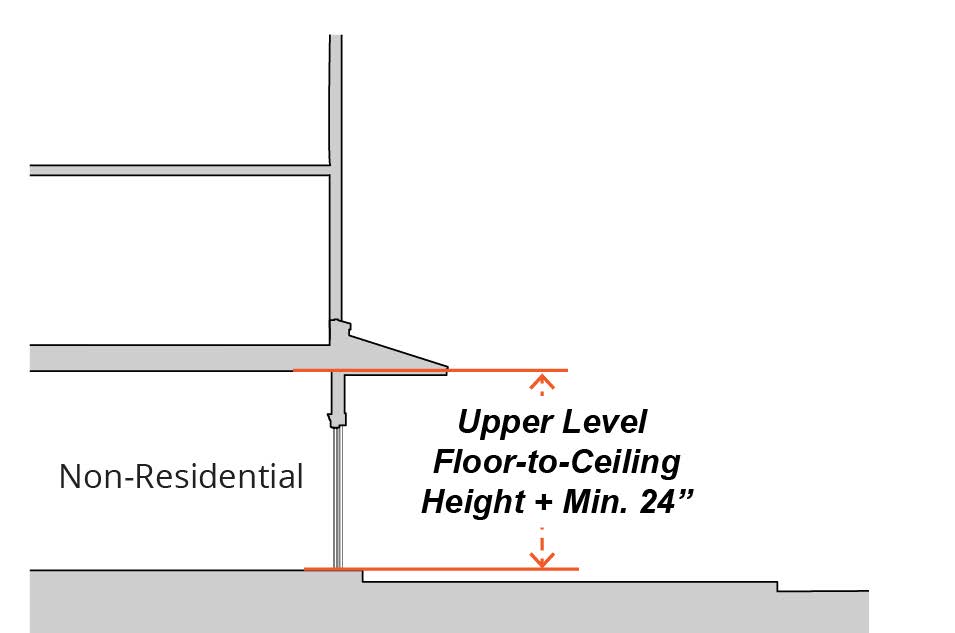 Ground Floor Floor-to-Ceiling Height. Minimum twenty-four (24) inches taller than typical upper floor floor-to-ceiling height.