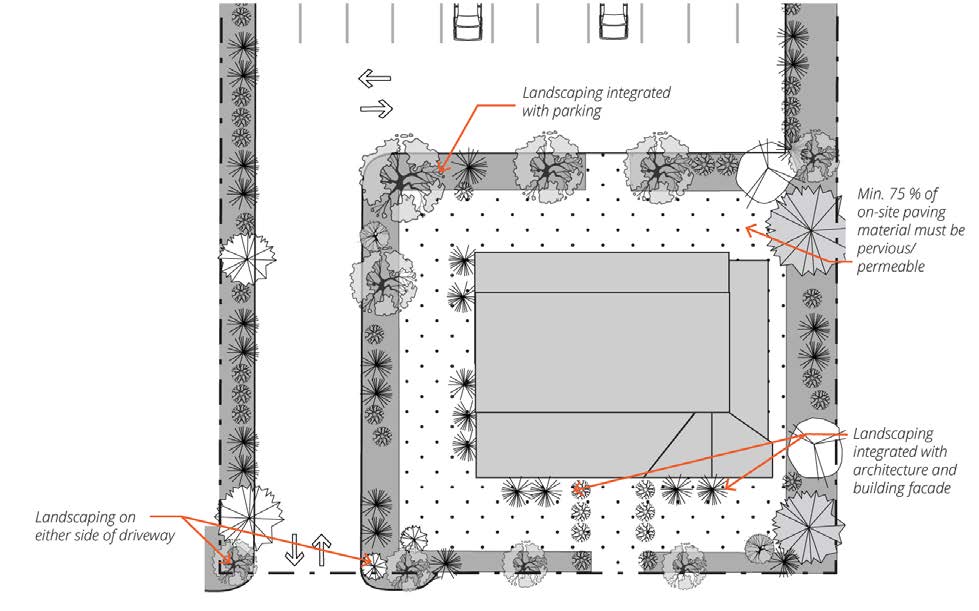 A minimum seventy-five (75) percent of on-site paving material must be pervious/permeable.