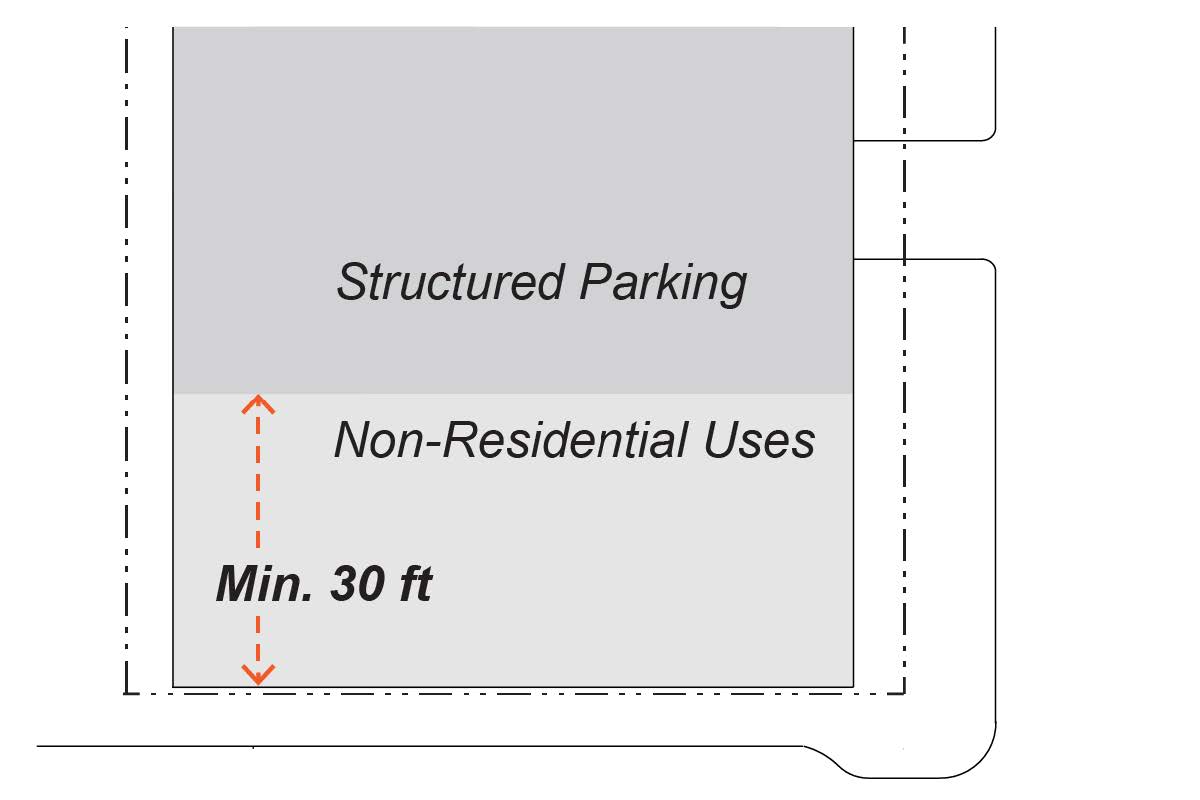 Where structured parking is provided, the parking area must be either: