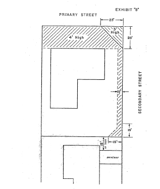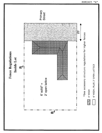 In order to ensure visibility, no fence exceeding three feet in height shall be located within a twenty-five (25) foot triangle at the intersection of two streets as outlined in Exhibit "A" of this chapter.