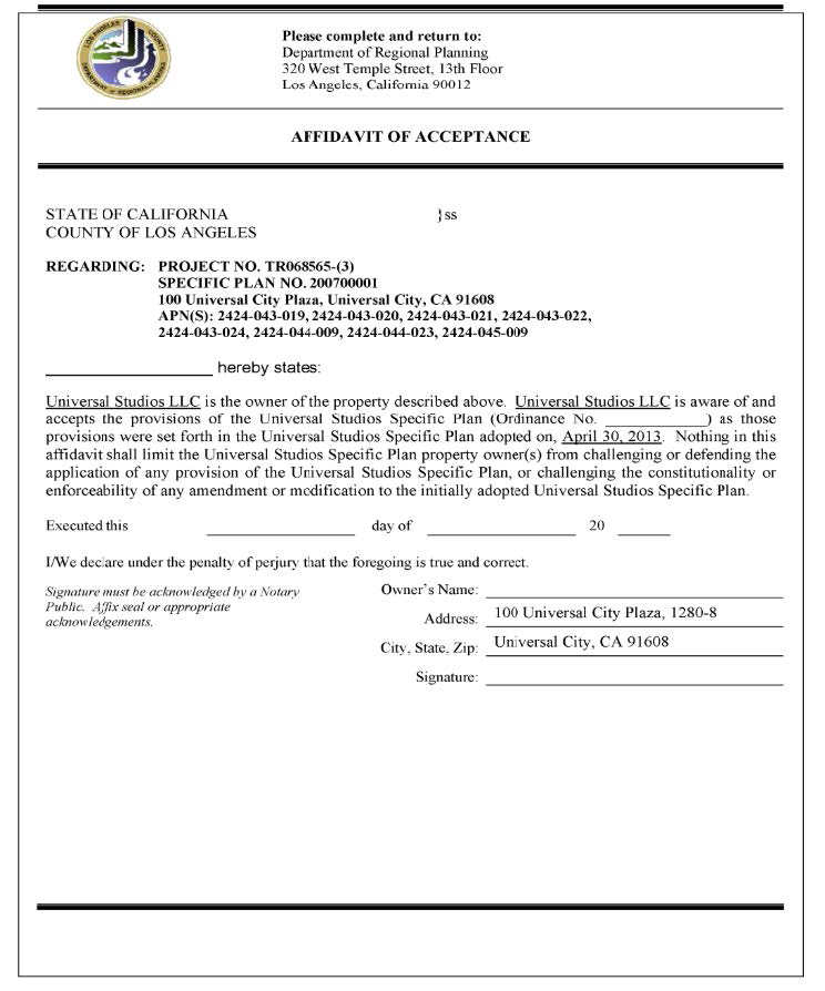 The Universal Studios Specific Plan was adopted by the Board on April 30, 2013.