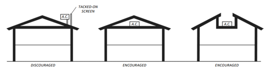 Mechanical Equipment. All mechanical equipment shall be located in a manner that avoids obstructing the architectural design of a building.