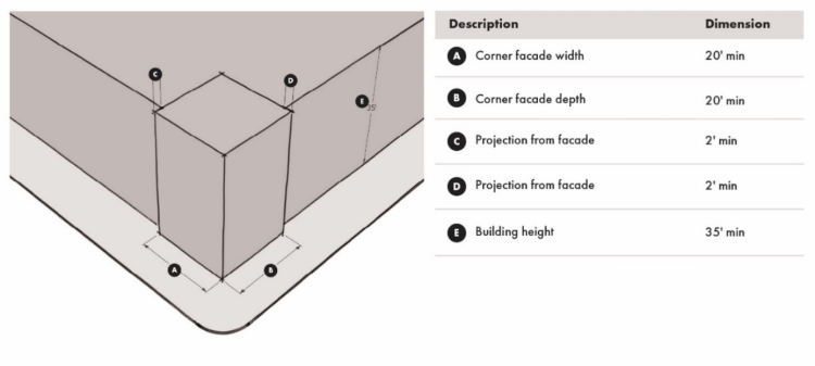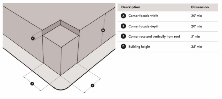 Façade-mounted equipment shall be flush mounted, architecturally integrated, or completely screened.