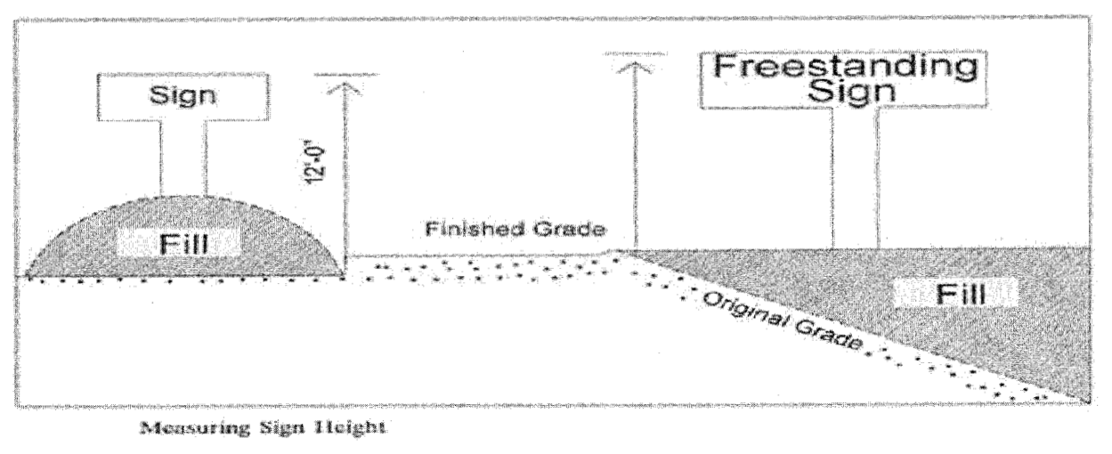 Determining sign height. The sign height shall be measured as the vertical distance from the normal grade directly below the sign to the highest point of the sign or sign structure, whichever is higher and shall include the sign base.
