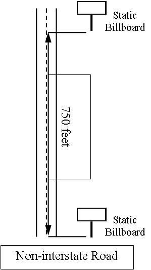 In no instance, however, shall two (2) advertising signs on the same side of the roadway be located less than seven hundred fifty (750) feet apart. (Refer to Figure 6.6.)