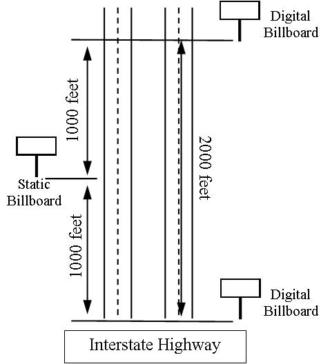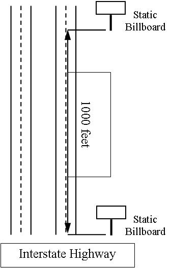 There shall be a minimum spacing of one thousand (1,000) feet between any electronic changeable face outdoor advertising sign and static billboard sign on the same side or opposite side of the street. (Refer to Figure 6.7.)
