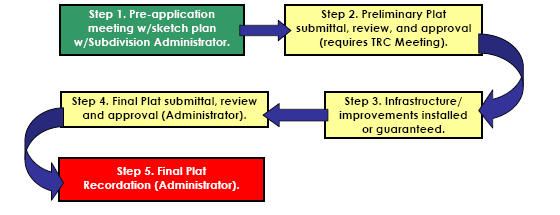 A subdivider shall apply to the Subdivision Administrator for a plat review process for major subdivisions. The steps in the following chart correspond with a detailed description of each step of the process on the following pages.